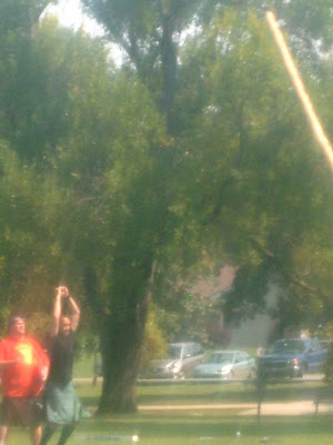 (7) Then it was up again on Sunday, September 27th, and with my niece Katie in tow with us, we took a drive south on Interstate 35 to McPherson for the annual Scottish Festival, often reported to be one of the top 100 small town events in all of America. It was a perfect day to take in the sights and the ongoing Highland Games. The two competitors above were trying to heave an iron ball over the high bar.
